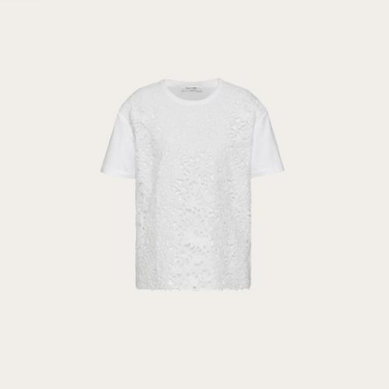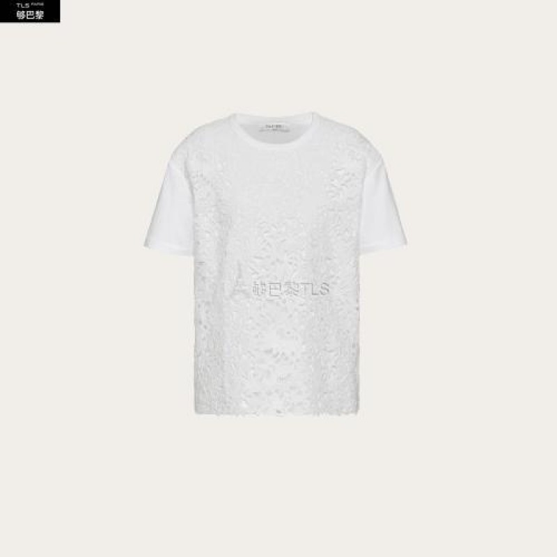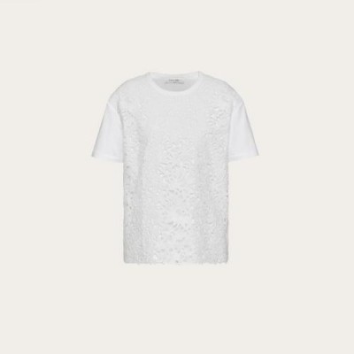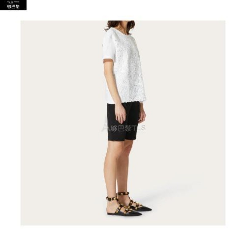 【包邮包税】 VALENTINO华伦天奴 21年春夏 女士 短袖T恤 T-SHIRT EN JERSEY ET MACRAMé VB0MG12W6EF0BO 预定商品1-3周发货