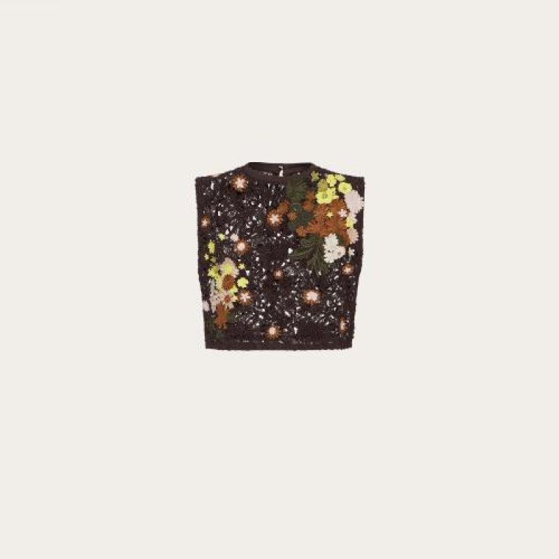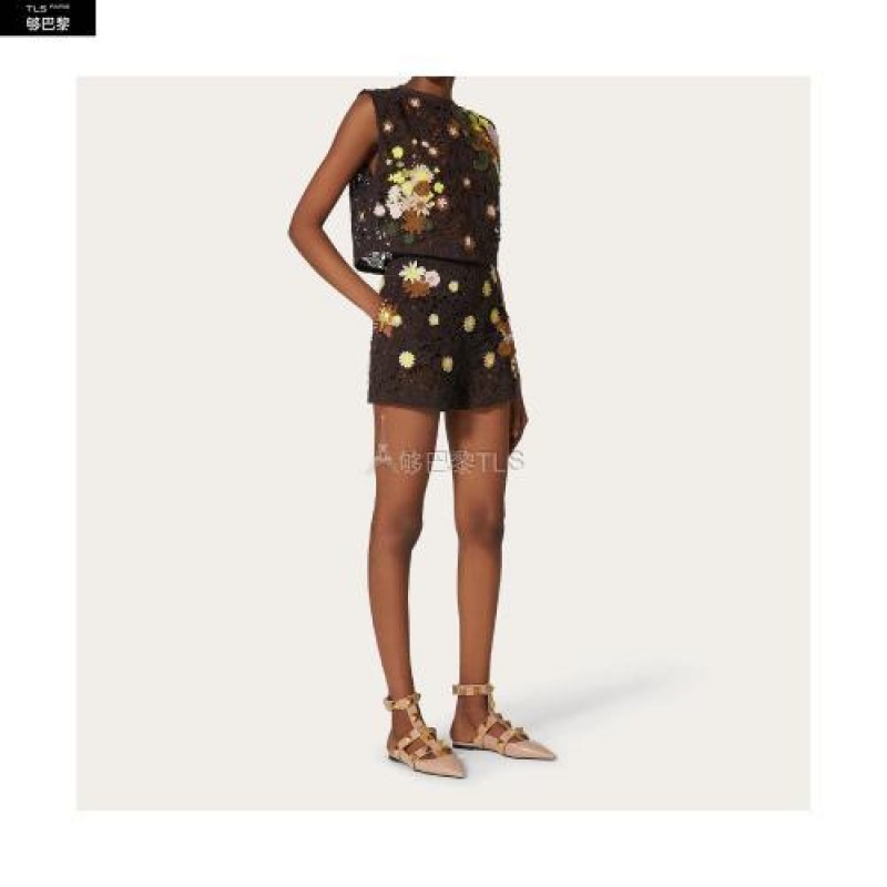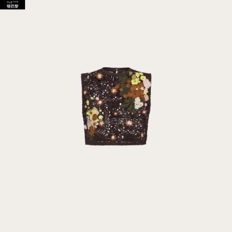 • 【包邮包税】 VALENTINO华伦天奴 21年春夏 女士 针织衫 TOP EN MACRAMé FLEURI BRODé VB0AE5X03QGW39 预定商品1-3周发货