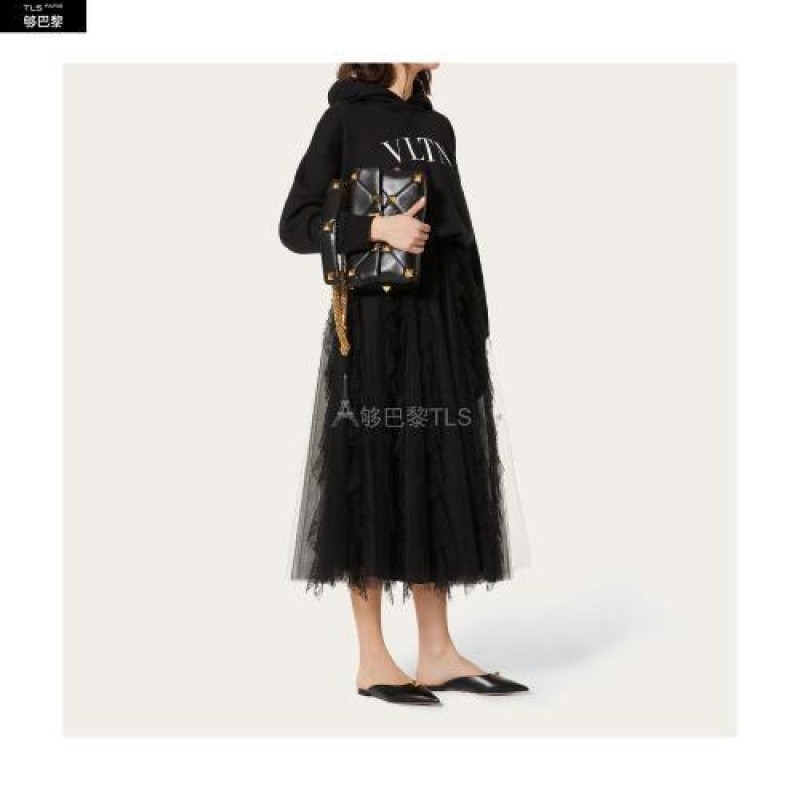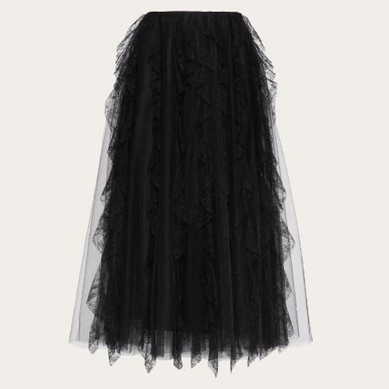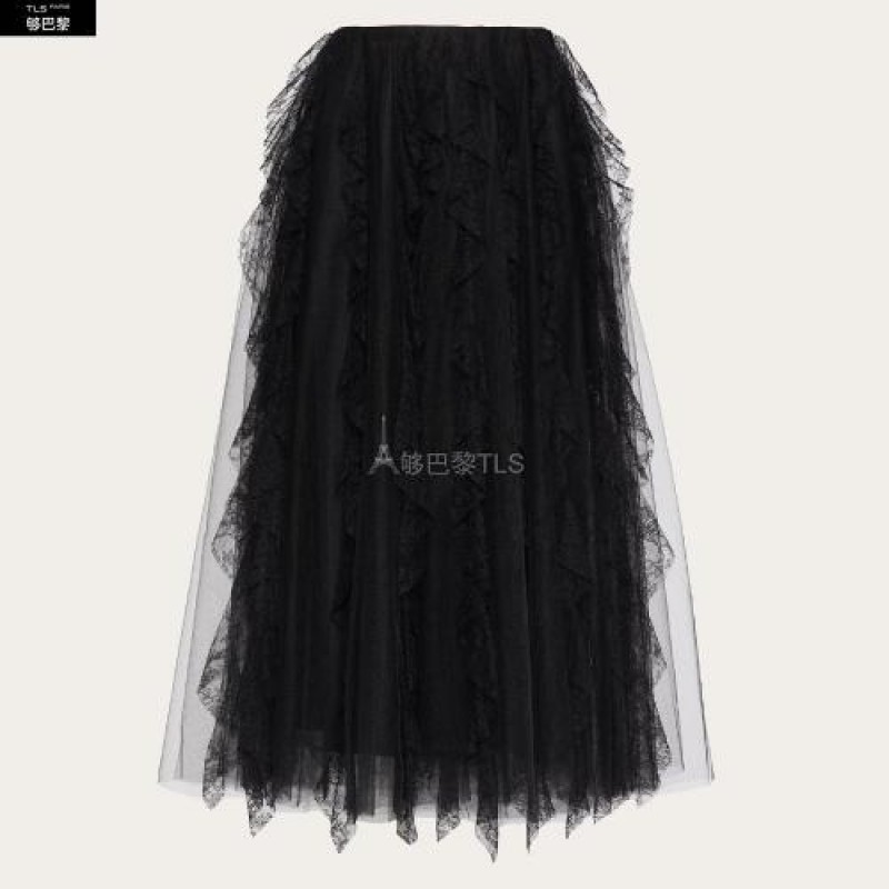 【包邮包税】 VALENTINO华伦天奴 21年春夏 女士 半身裙 JUPE EN TULLE ILLUSIONE A*w*VE RUCHéS VB3RA7D51 预定商品1-3周发货