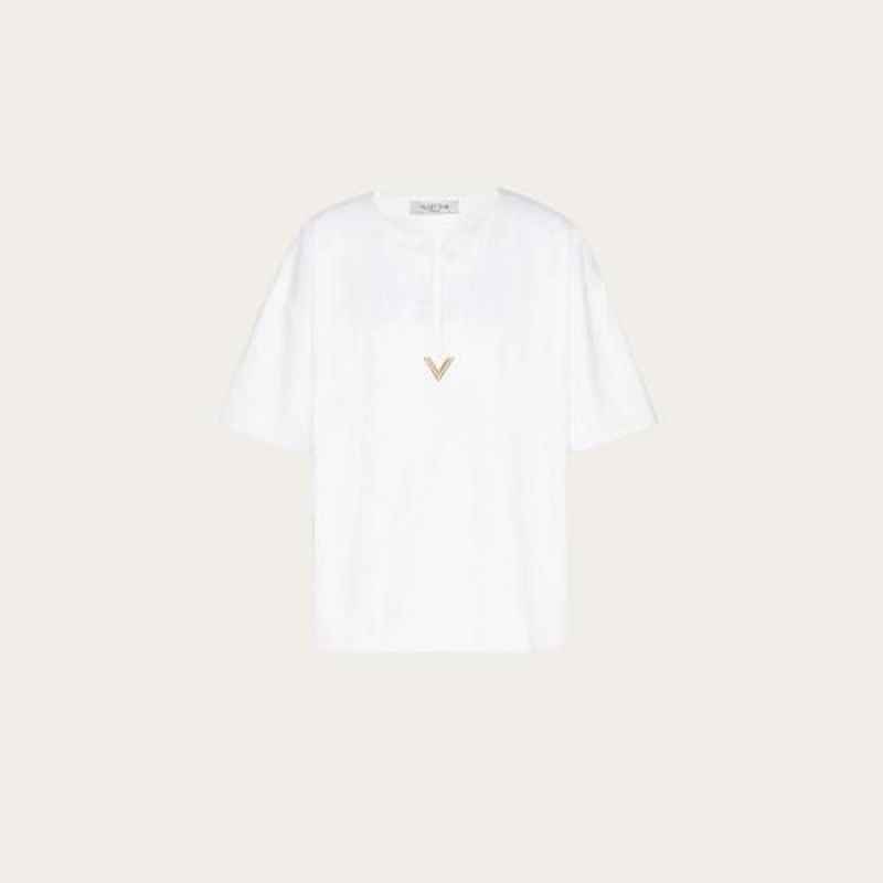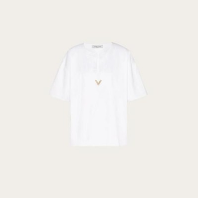 【包邮包税】 VALENTINO华伦天奴 21年春夏 女士 短袖T恤 T-SHIRT IN JERSEY VGOLD VB3MG11T69W0BO 预定商品1-3周发货