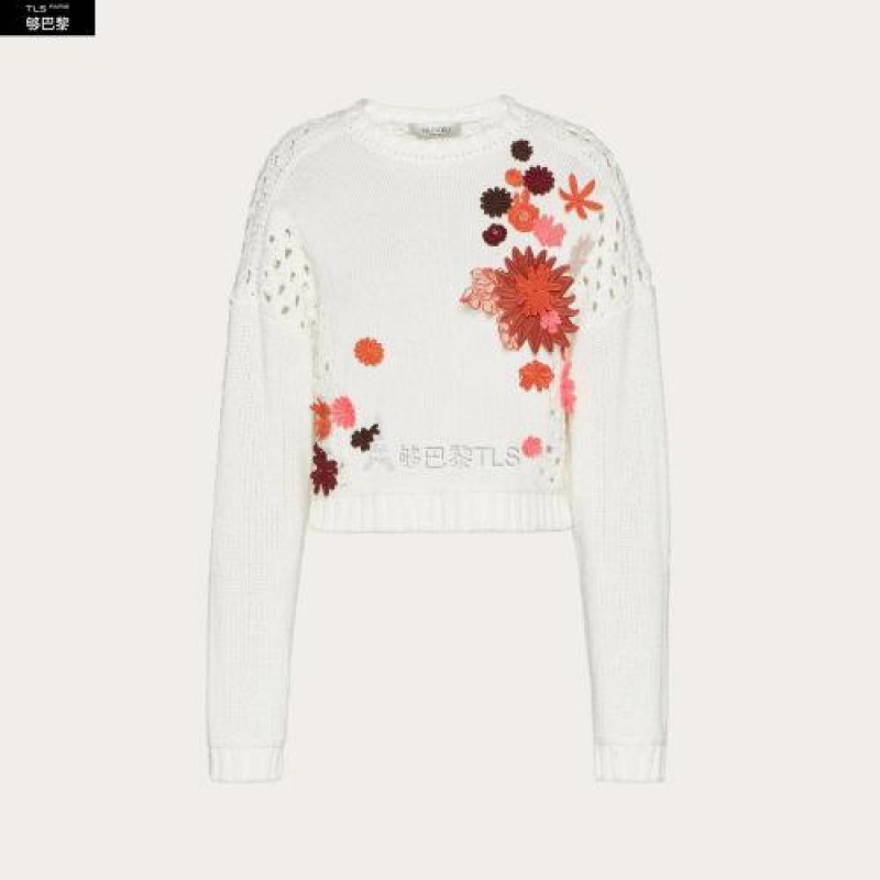 • 【包邮包税】 VALENTINO华伦天奴 21年春夏 女士 针织衫 PULL EN COTON BRODé VB0KC23C6E0AM0 预定商品1-3周发货