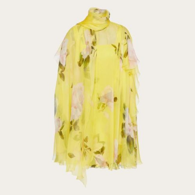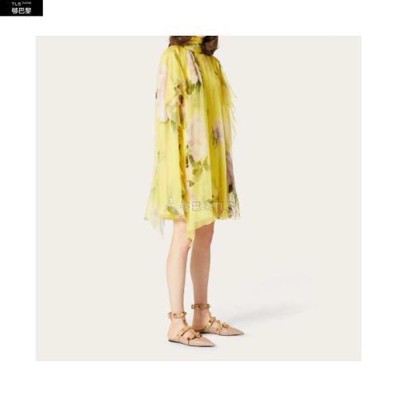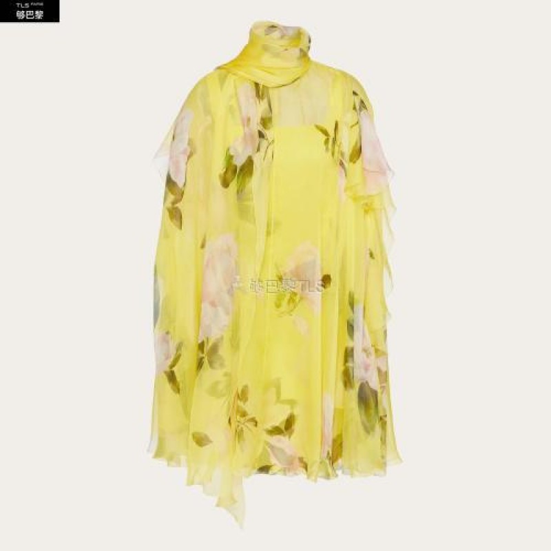 【包邮包税】 VALENTINO华伦天奴 21年春夏 女士 连衣裙 ROBE CAPE EN MOUSSELINE IMPRIMéE VB0VA*w*VZ56DM 预定商品1-3周发货