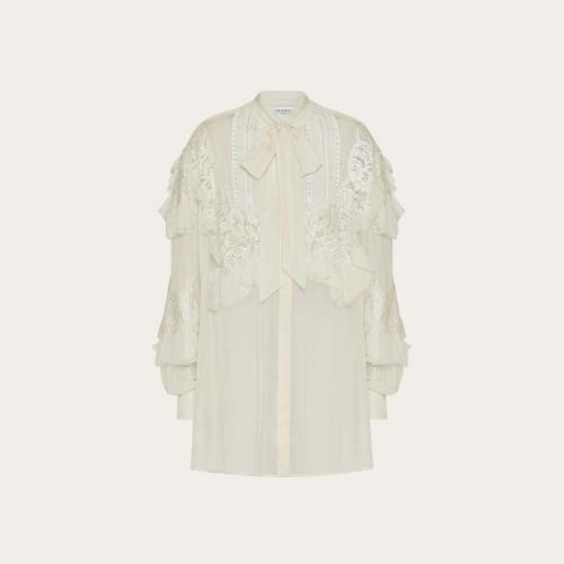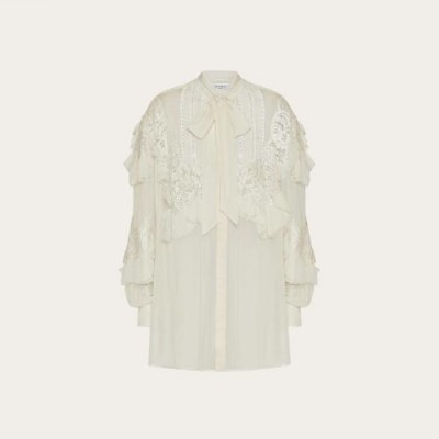 • 【包邮包税】 VALENTINO华伦天奴 21年春夏 女士 长袖衬衫 CHEMISIER EN MOUSSELINE VB0AB2902UPV57 预定商品1-3周发货