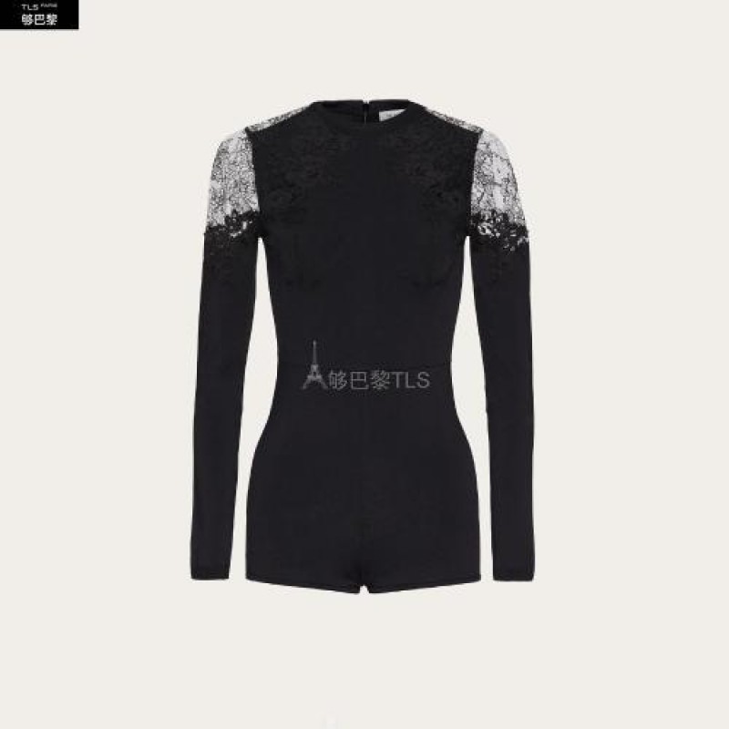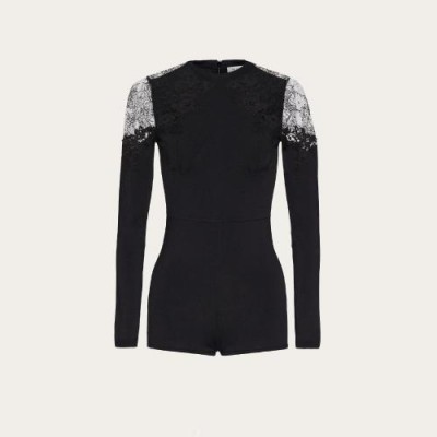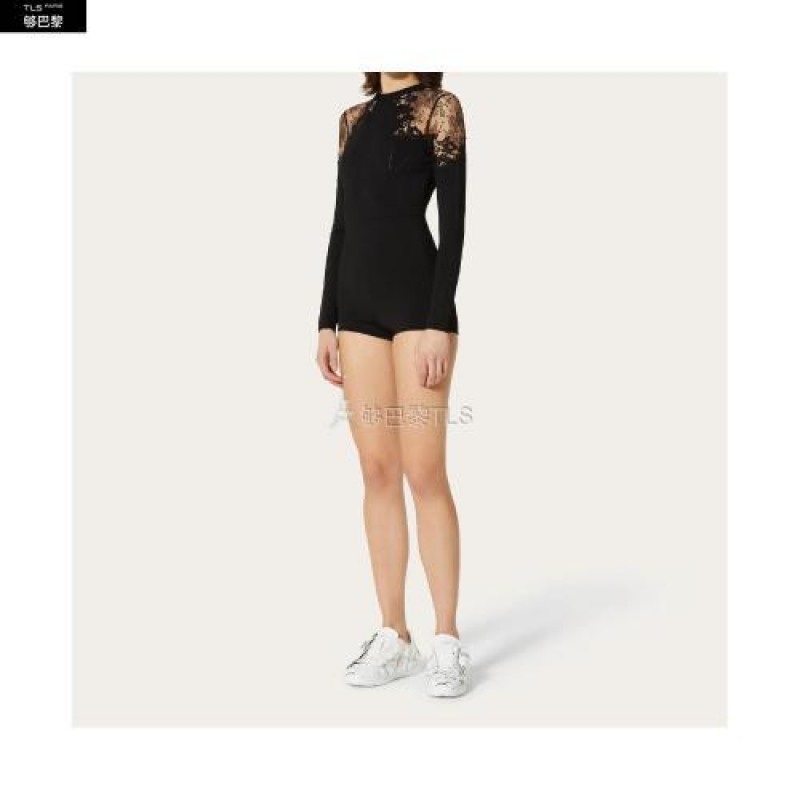 • 【包邮包税】 VALENTINO华伦天奴 21年春夏 女士 连体衣 COMBINAISON COURTE EN VISCOSE STRETCH ET DENTELL 预定商品1-3周发货