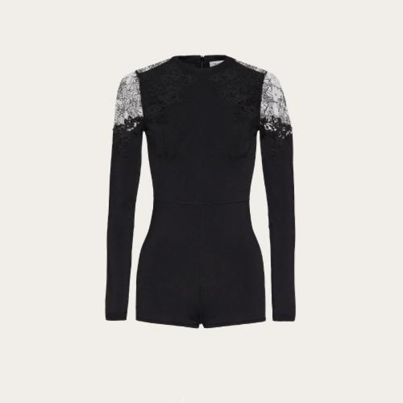 【包邮包税】 VALENTINO华伦天奴 21年春夏 女士 连体衣 COMBINAISON COURTE EN VISCOSE STRETCH ET DENTELL 预定商品1-3周发货