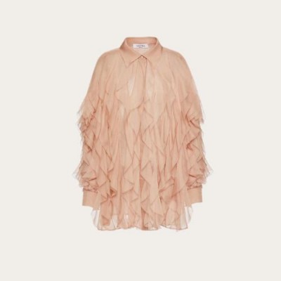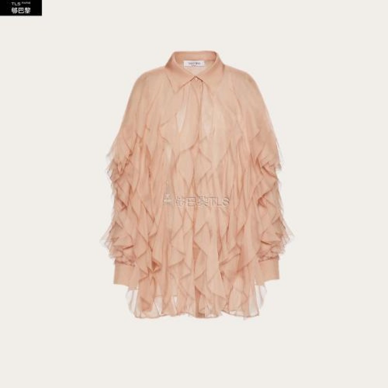 【包邮包税】 VALENTINO华伦天奴 21年春夏 女士 长袖衬衫 CHEMISIER EN MOUSSELINE VB0AB2652UPS69 预定商品1-3周发货