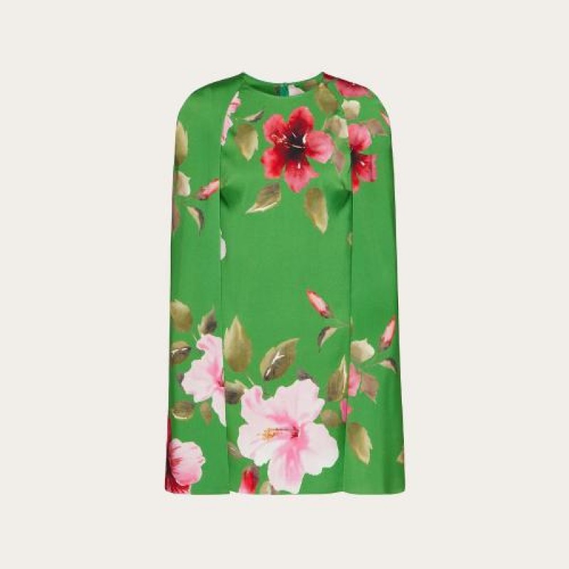 Robe cape en serge stretch avec imprime hibiscus. - Pelerine appliquee par-dessus la robe - Coupe cape - Fermeture zippee avec goutte d’eau et bouton au dos - Serge stretch (96 % soie, 4 % elasthanne) - Modele non double - Longueur pour la taille 40 italienne : 87 cm depuis l’epaule - Le mannequin mesure 176 cm et porte une taille 40 italienne - Fabrication italienne.