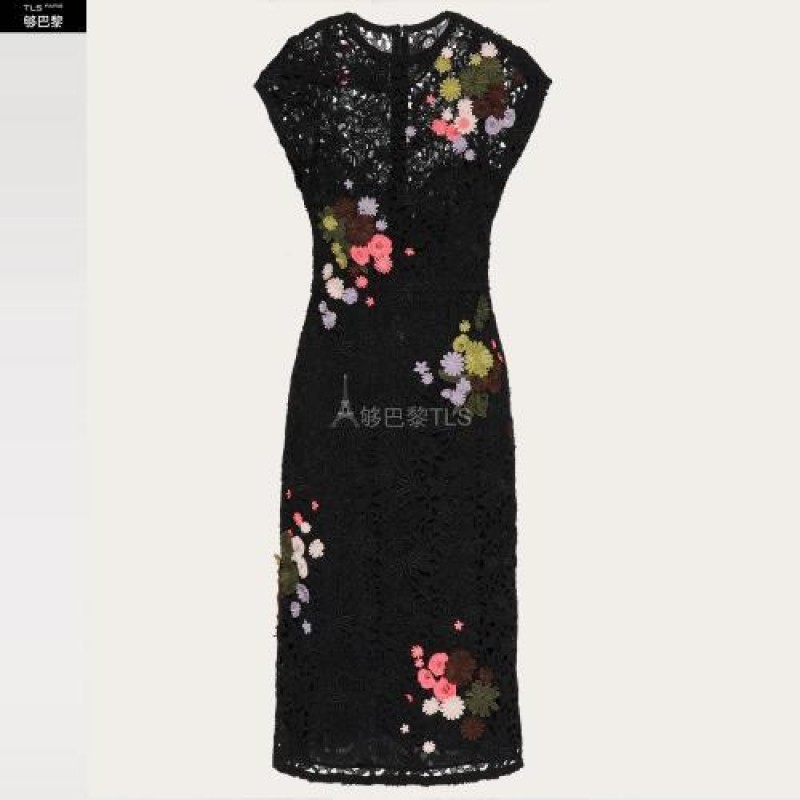 【包邮包税】 VALENTINO华伦天奴 21年春夏 女士 连衣裙 ROBE EN MACRAMé FLEURI BRODé VB0VA*w*VU43QGK92 预定商品1-3周发货