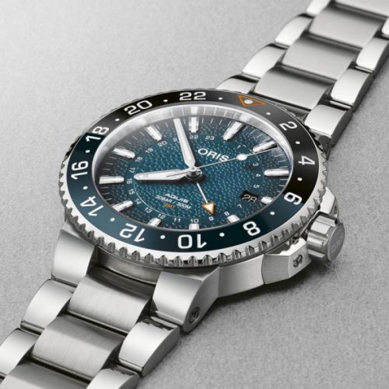 Oris/豪利时鲸鲨限量版GMT两地时日历蓝盘自动机械男表79877544175