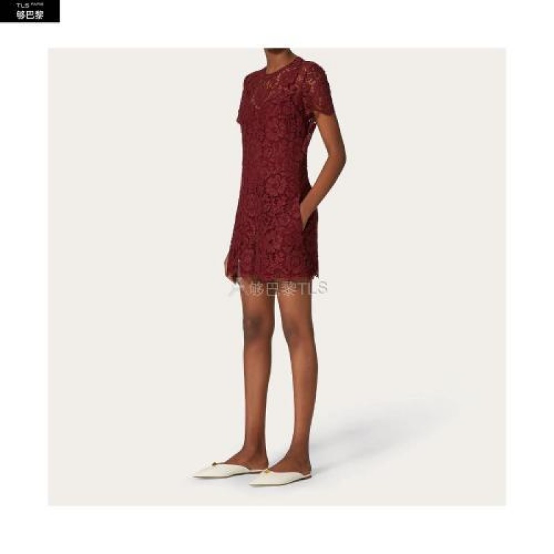 • 【包邮包税】 VALENTINO华伦天奴 21年春夏 女士 连衣裙 COMBINAISON COURTE EN GUIPURE VB3VE1K51ECGAR 预定商品1-3周发货