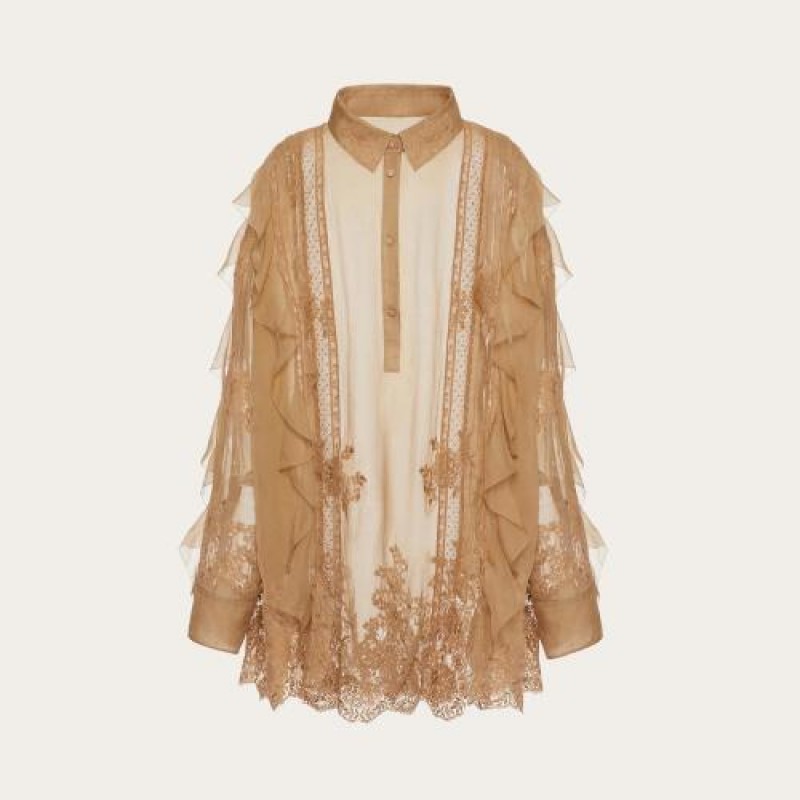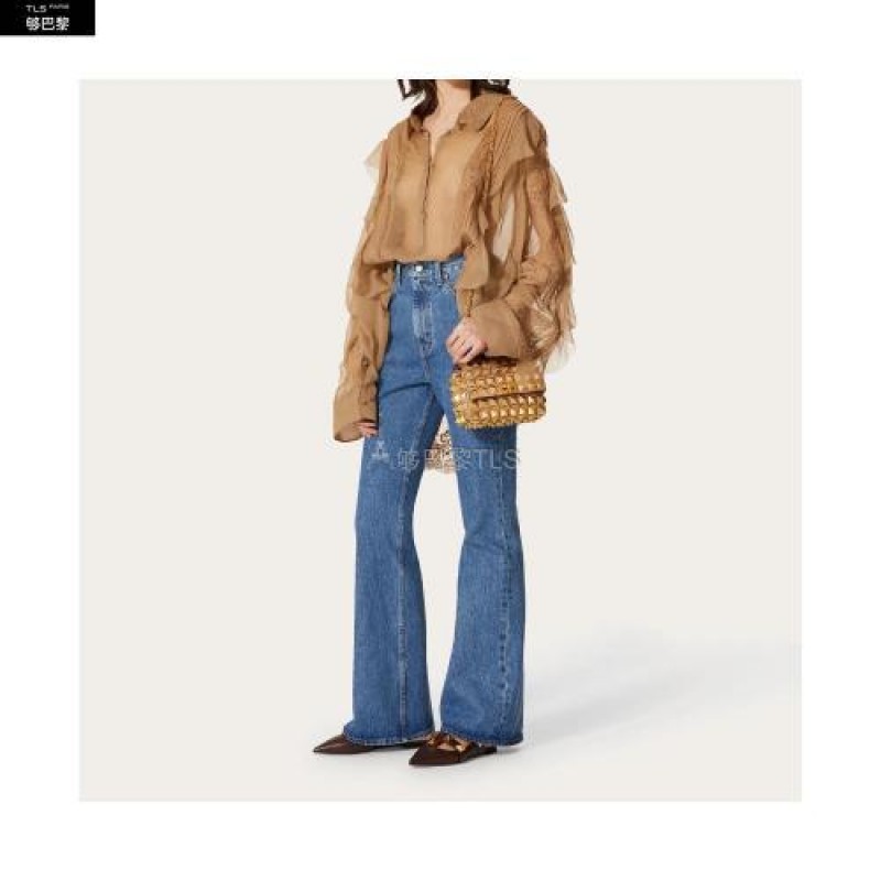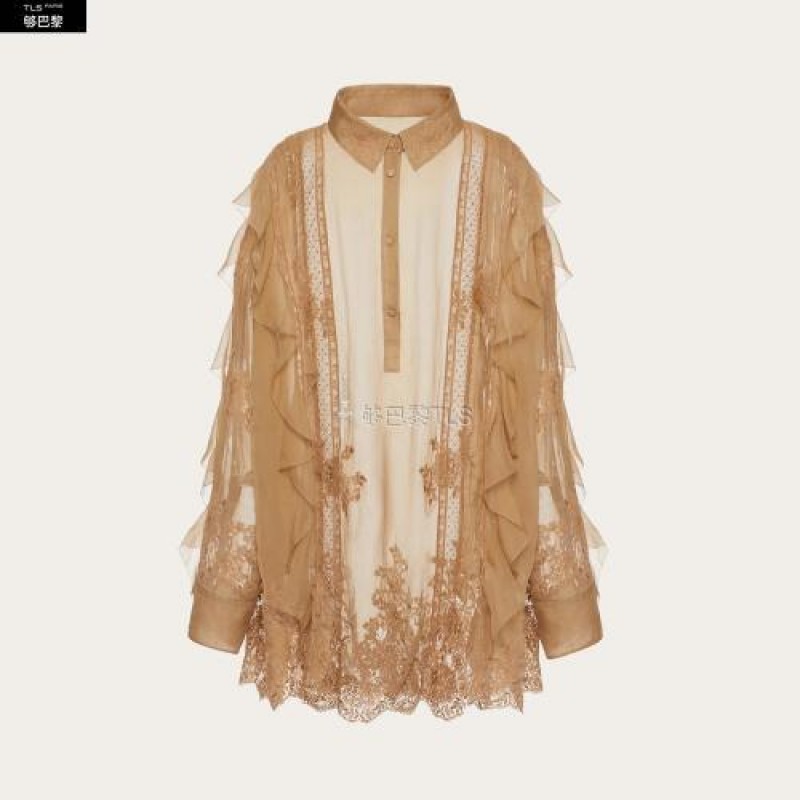 【包邮包税】 VALENTINO华伦天奴 21年春夏 女士 长袖衬衫 TOP EN MOUSSELINE VB0AE5X52UPGH9 预定商品1-3周发货