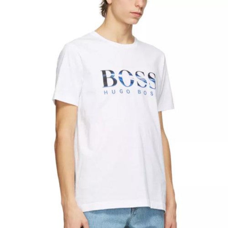 HUGO BOSS/HUGO BOSS [Spring/Summer 2021] White micro label printed cotton short sleeved T-shirt [Hot selling main promotion in stock]