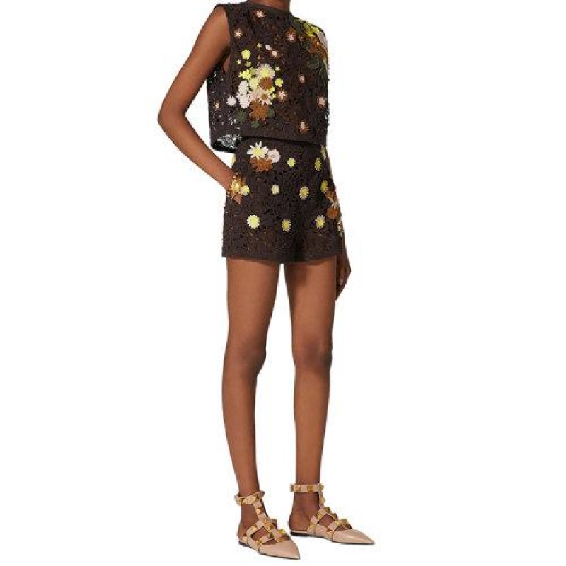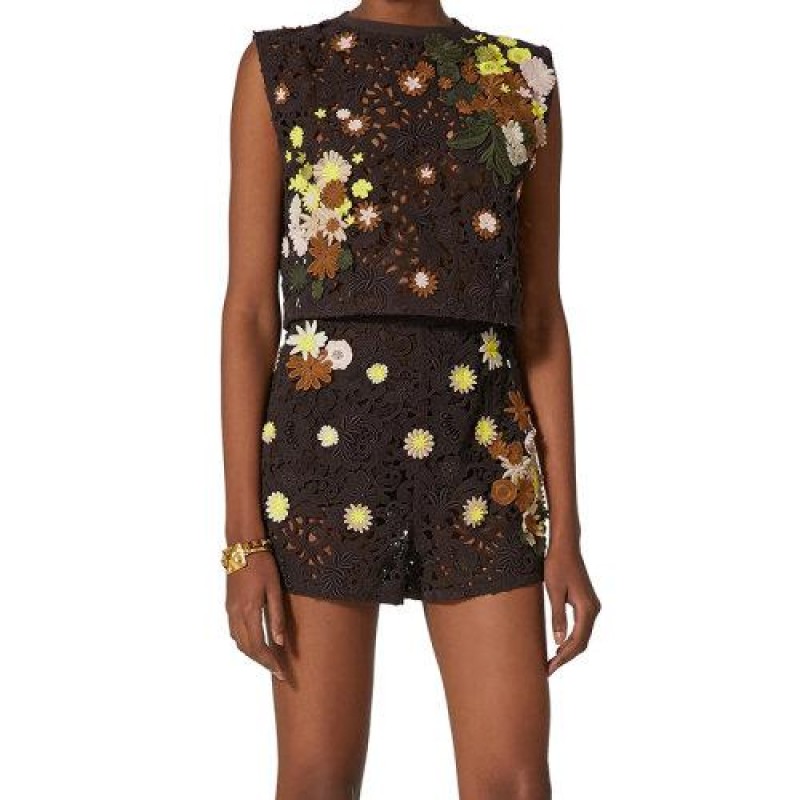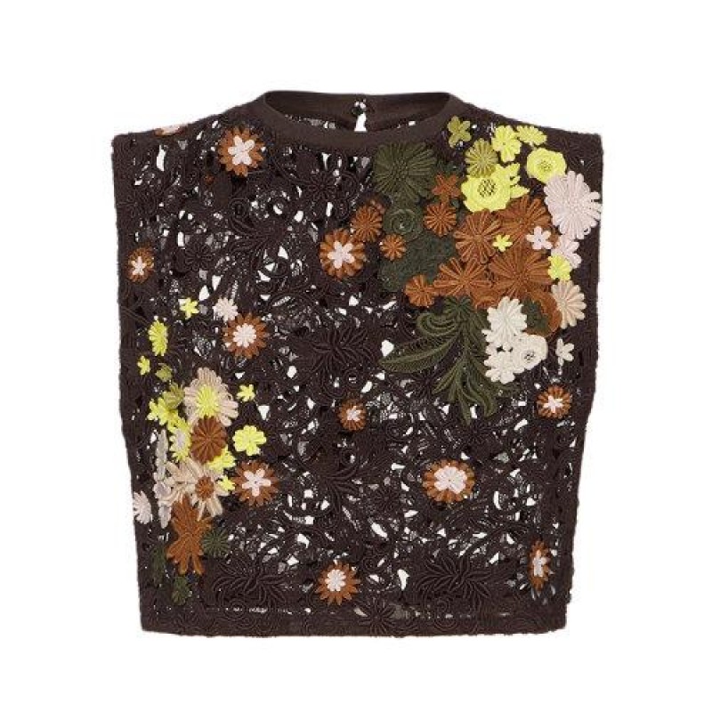 【包税】Valentino/华伦天奴 21年春夏新款 女士乌木色/多色棉质绣花花卉玛格丽特上衣VB0AE5X03QGW39