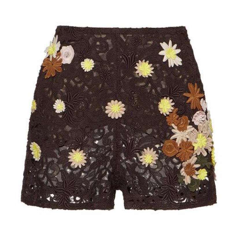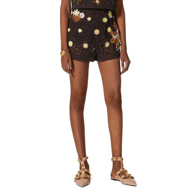 【包税】Valentino/华伦天奴 21年春夏新款 女士乌木色/多色棉质刺绣花朵花卉短裤VB0AE5X03QGW39
