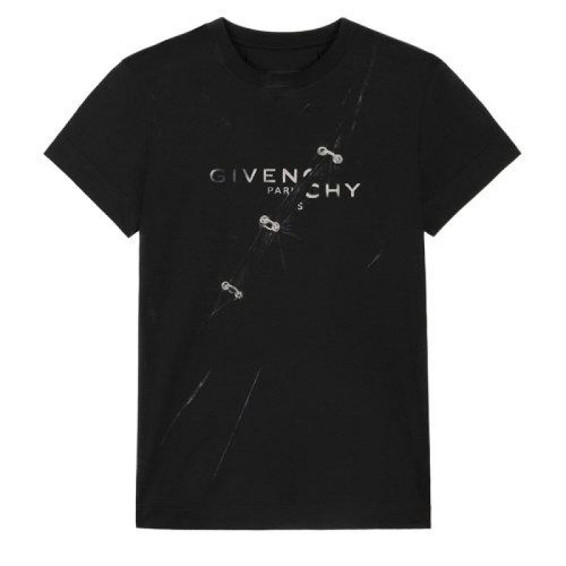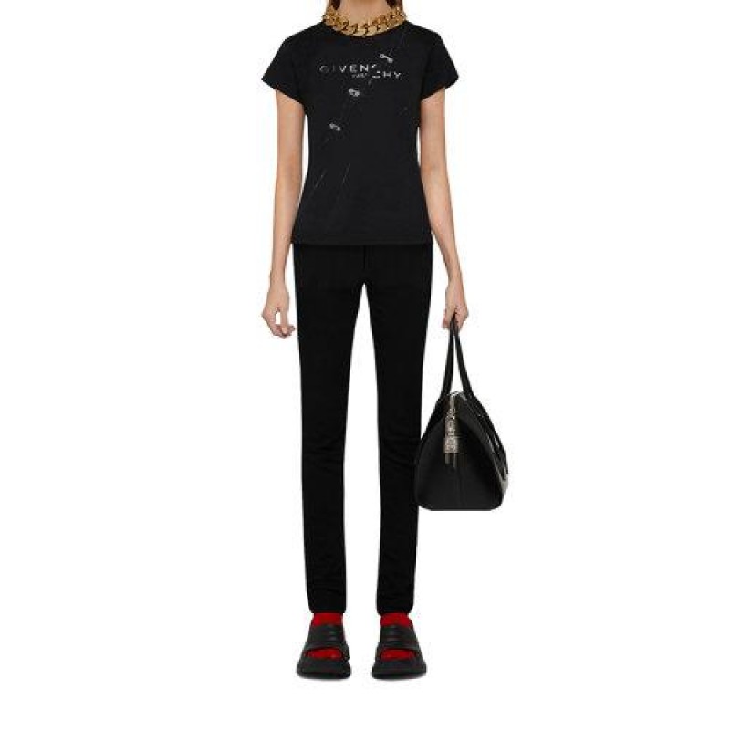 【包税】Givenchy/纪梵希 2021年新款 女士黑色棉质视觉陷阱效果修身T恤BW707Y3Z51-001