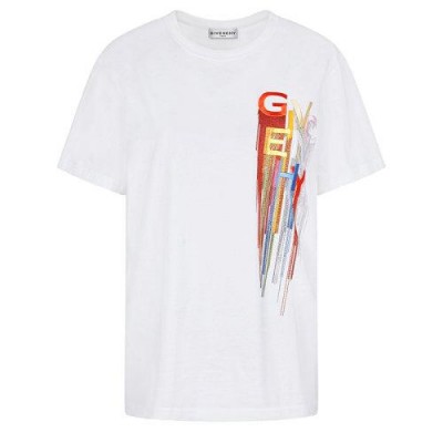 【包税】Givenchy/纪梵希 2021年新款 女士白色棉质多色刺绣帅气修身T恤BW707Z3Z43-100