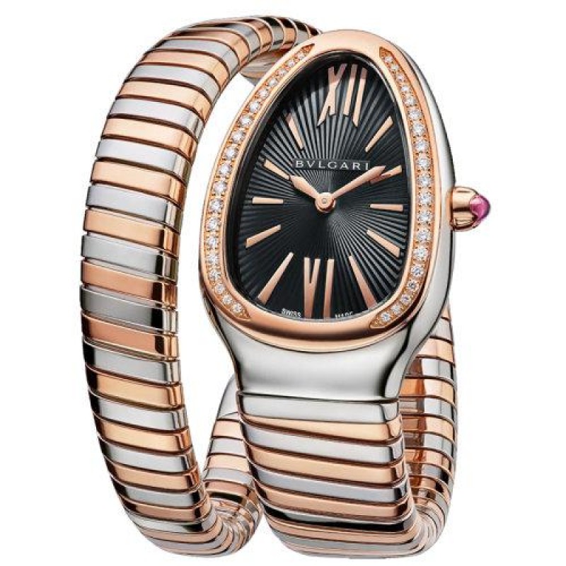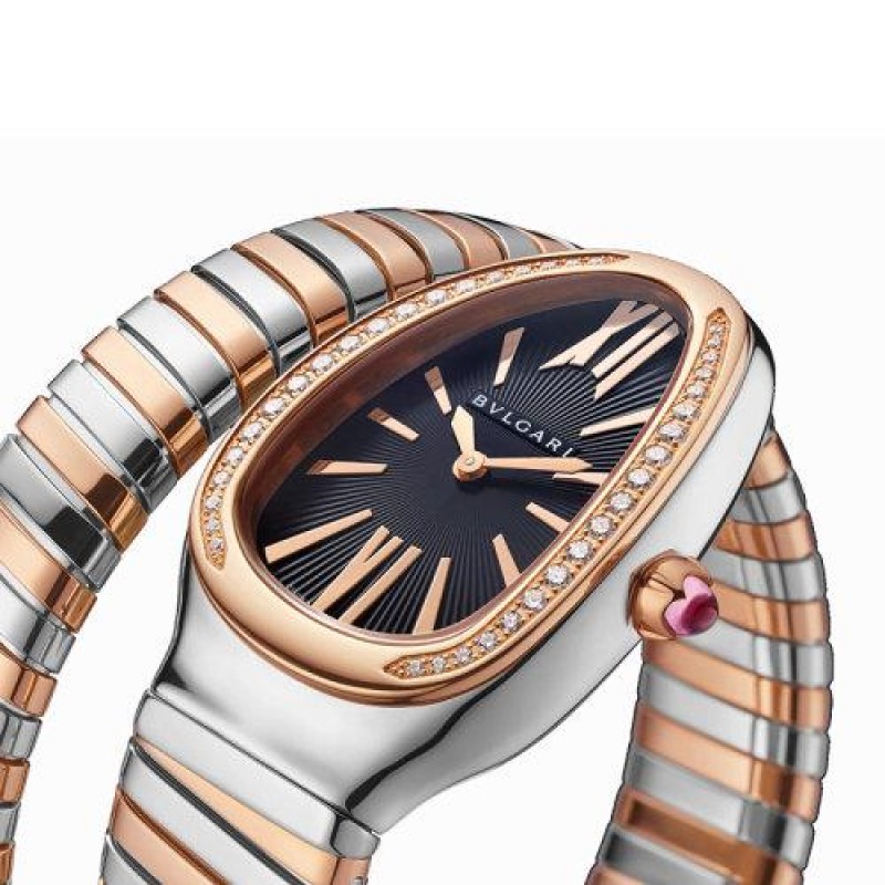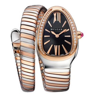 【 Tax included 】 Reserve 2-3 weeks BVLGARI/Bulgari stainless steel case 18K gold rose gold bezel and stainless steel single helix bracelet with bright cut diamond black milky white dial SERPENTI TUBOGAS quartz watch 35mm 102098