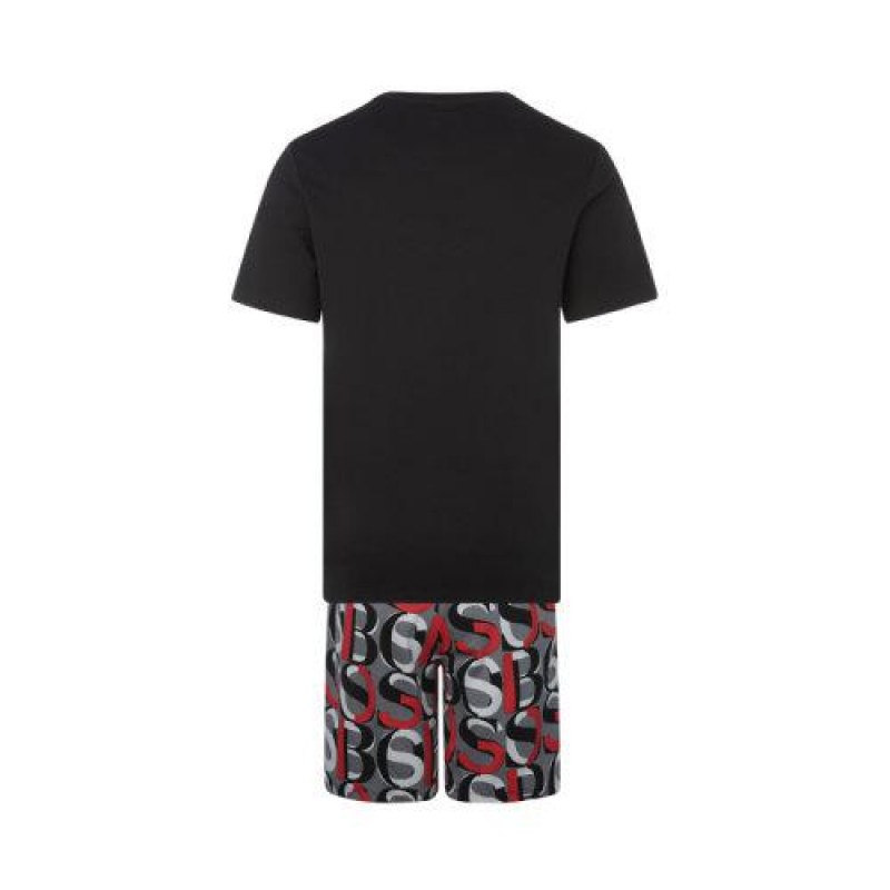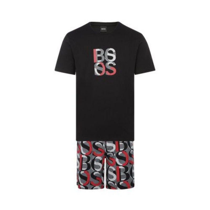 【21春夏新品国内现货】HUGO BOSS/雨果博斯 黑色棉质LOGO装饰男士休闲短袖套装男士其他套装
