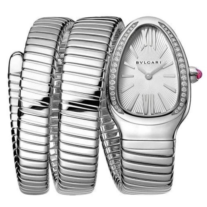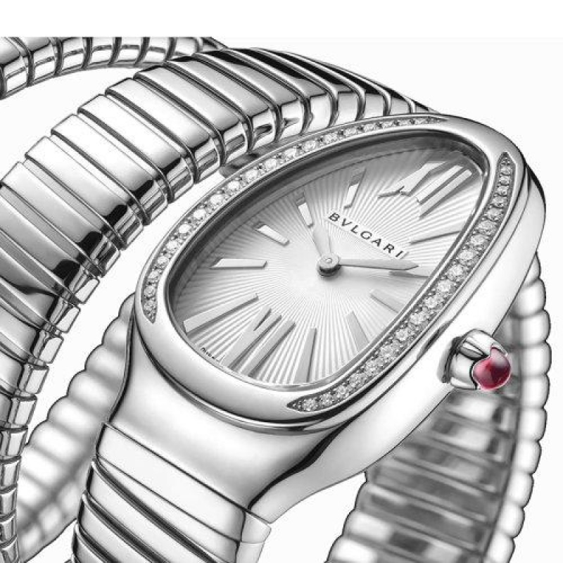 【 Tax included 】 Book 2-3 weeks BVLGARI/Bulgari stainless steel double helix case and bracelet bezel with bright cut diamonds and silver opaque dial SERPENTI TUBOGAS quartz watch 35mm 101910