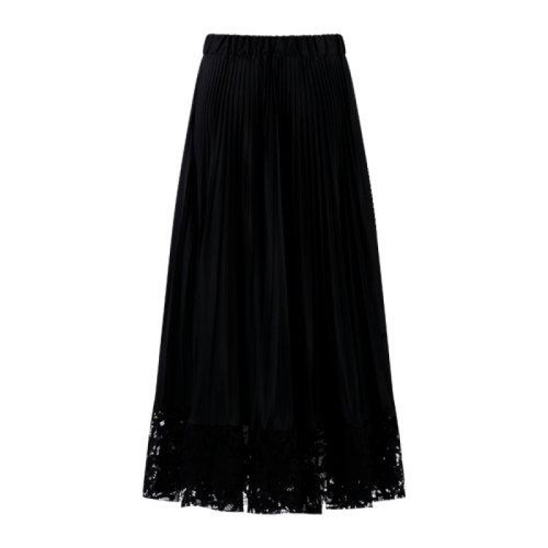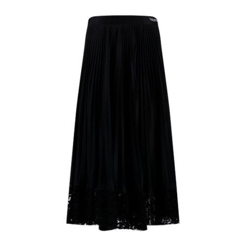 【包税】Valentino/华伦天奴 黑色 松紧百褶拼接蕾丝边长裙女士半身裙 TB3MD01H575 0N0