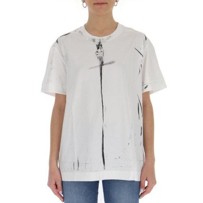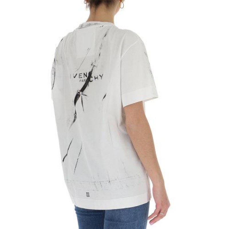 【预计两周左右发货】GIVENCHY 纪梵希 女士 服装 21春夏 圆领白色视觉陷阱效果棉质T恤 女士短袖T恤