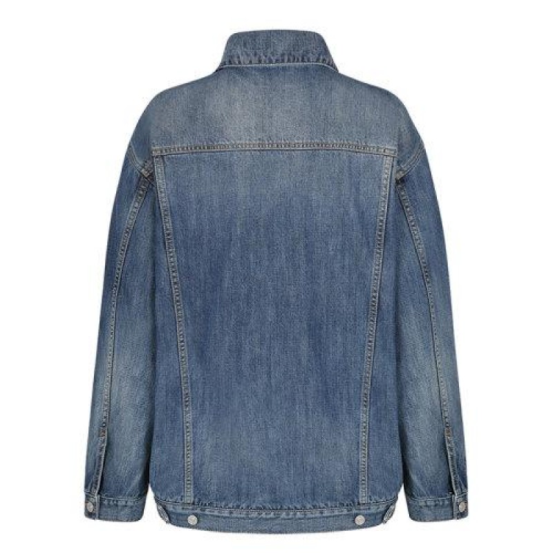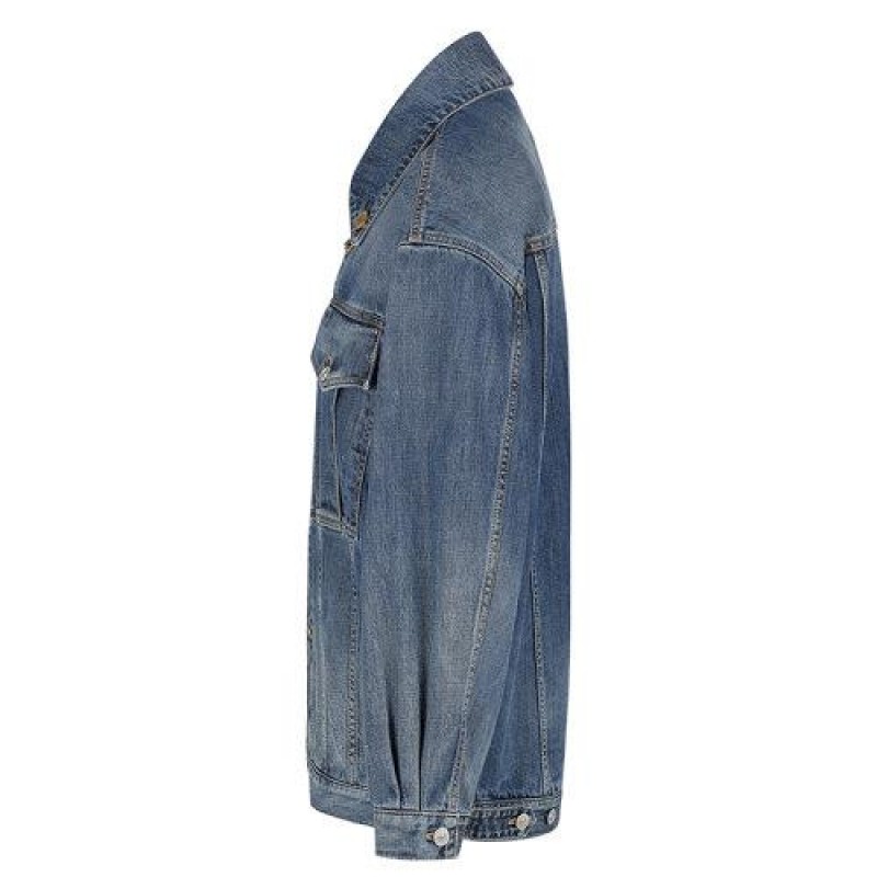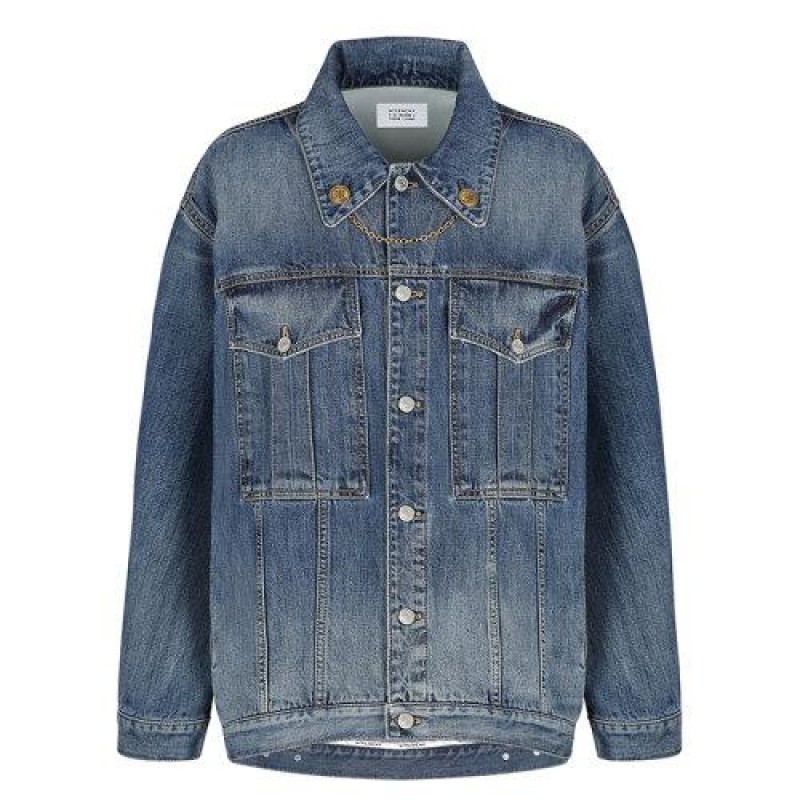 【 Tax included 】 Givenchy/Givenchy 2021 early spring new style collar with detachable small chain and 2 retro gold metal 4G buttons, retro effect gradient blue oversized denim jacket BW00BU50LD-420