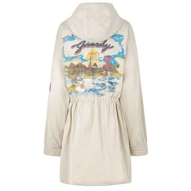 【 Tax included 】 Givenchy/Givenchy 2021 early spring new model with multi colored GIVENCHY Island print on the back, black decorative patch on the left sleeve, milky yellow cotton Huada woolen hooded parka BW00AX11QN-286