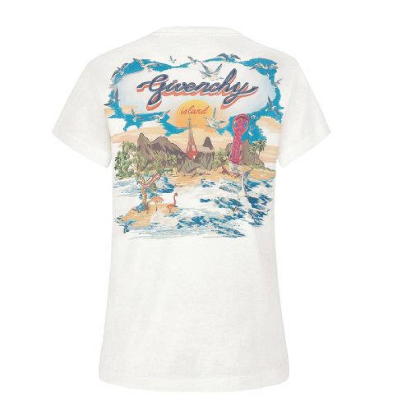 【 Tax included 】 Givenchy/Givenchy 2021 Early Spring New Collection with Multi Color GIVENCHY Island Printed Ivory White Knitted T-shirt BW707Y3Z4P-105 on Chest and Back