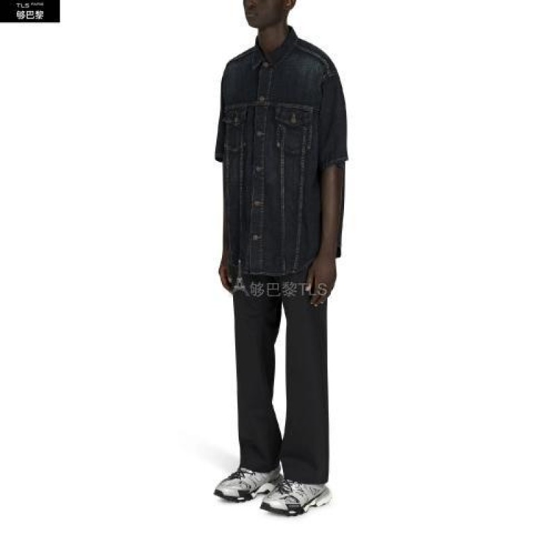 【包邮包税】 BALENCIAGA巴黎世家 21年春夏 男士 夹克 轻便日本牛仔衬衫 BAL3WD42BLU 预定商品1-3周发货