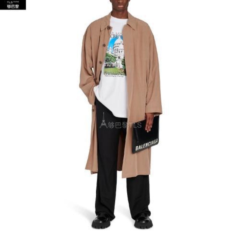 【包邮包税】 BALENCIAGA巴黎世家 21年春夏 男士 风衣 流线剪裁短大衣 BALU9JF8BEI 预定商品1-3周发货