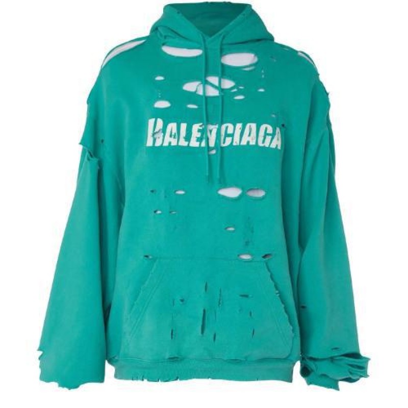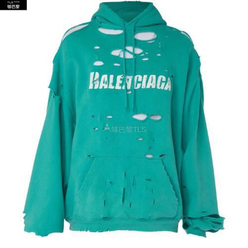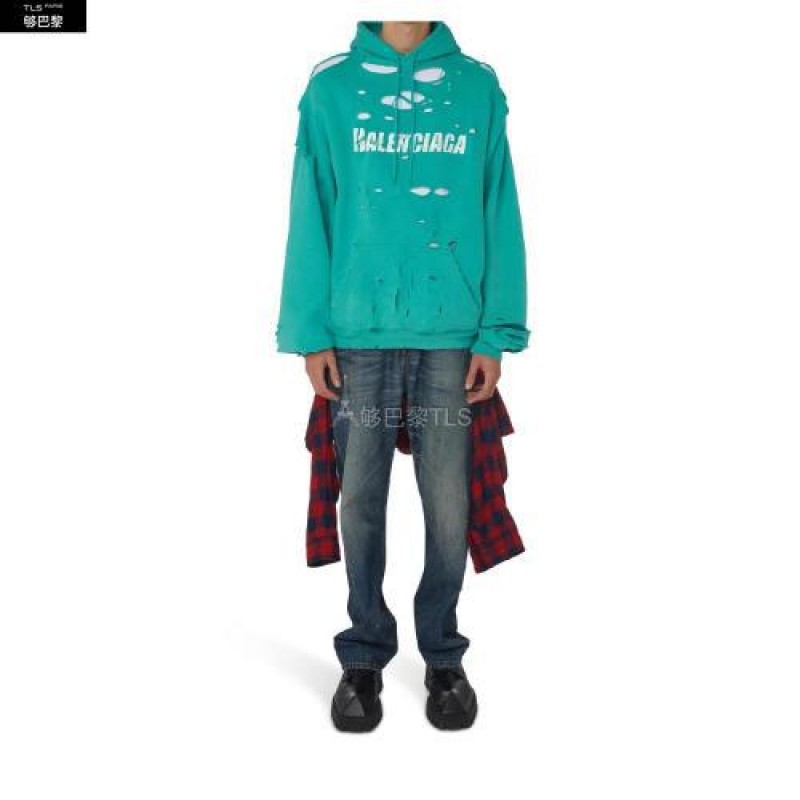 【包邮包税】 BALENCIAGA巴黎世家 21年春夏 男士 卫衣 Destroyed 系列连帽衫 BAL7THNRBLU 预定商品1-3周发货