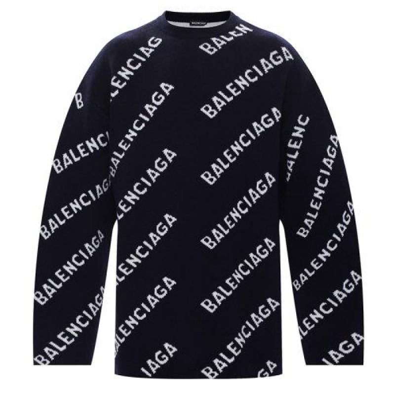 Balenciaga/巴黎世家 21春夏 男士 针织衫/毛衣 字母logo提花 宽松版 蓝色 623283T1567 4177【现货】