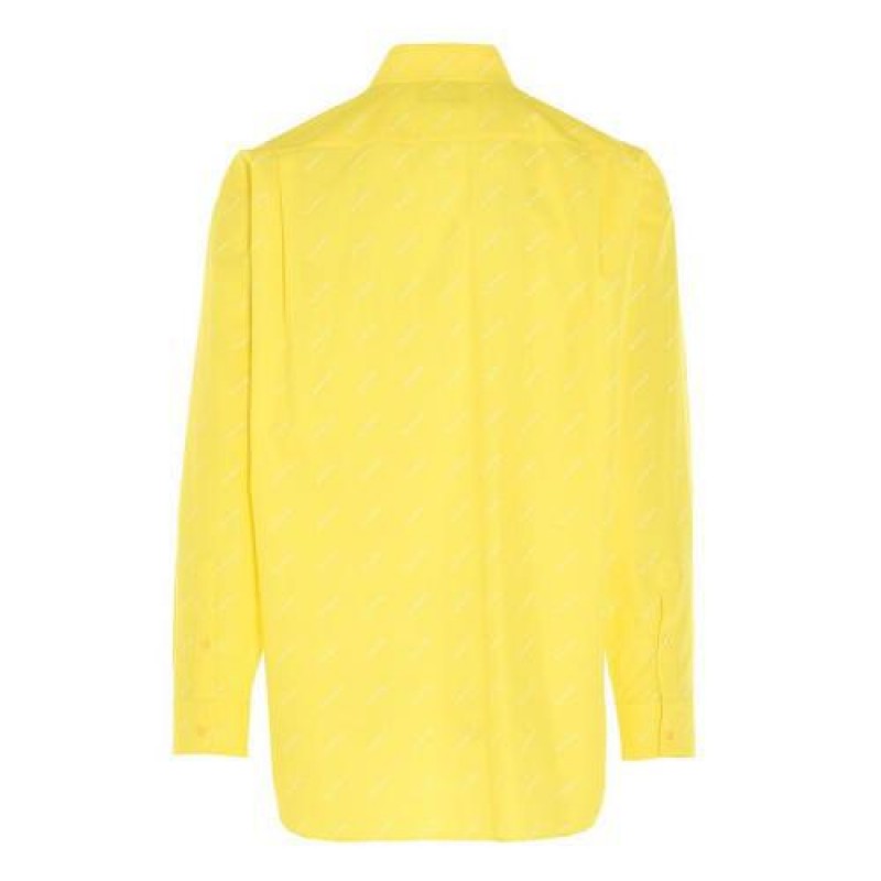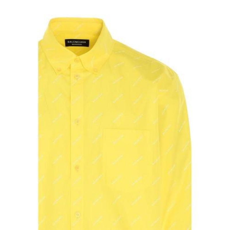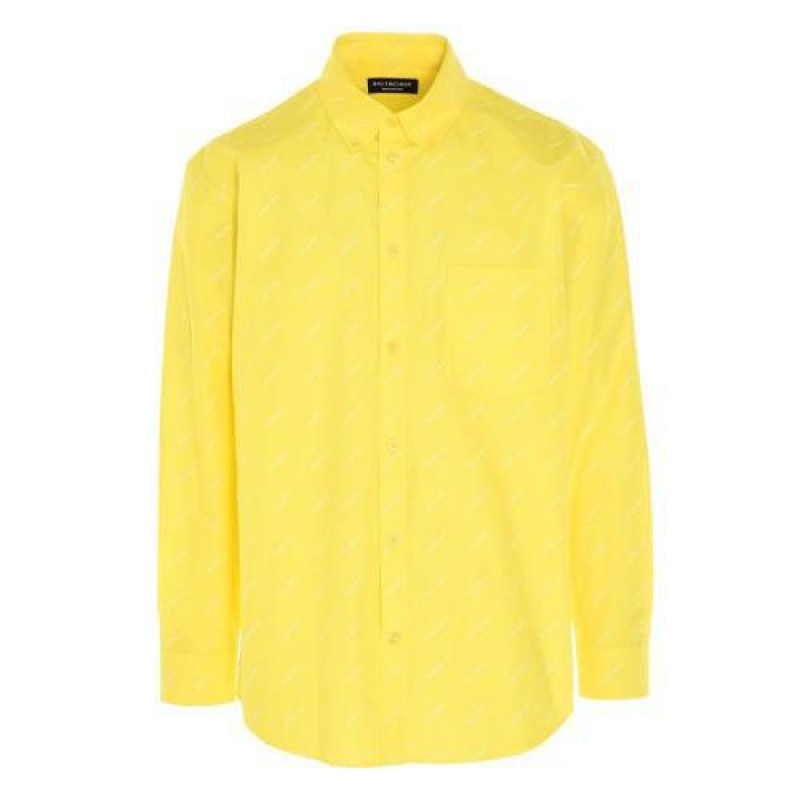 Balenciaga/巴黎世家 21春夏 男士 长袖衬衫 满版品牌字母logo印花 黄色 534333TBL96 7201【现货】