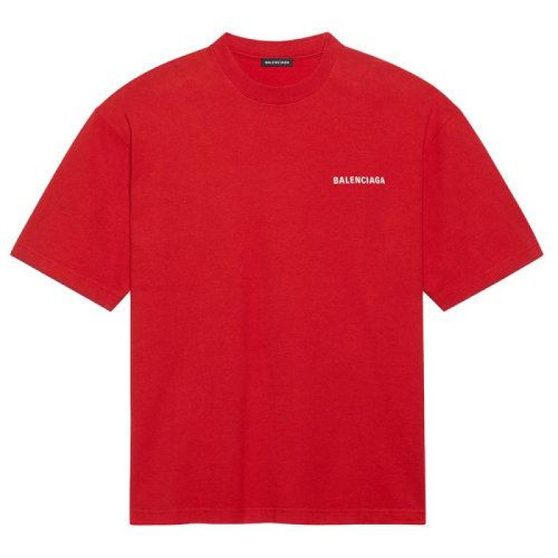 【包税】Balenciaga/巴黎世家 2021年新款 男士红色棉质中号徽标合身T恤612966TIVG56540