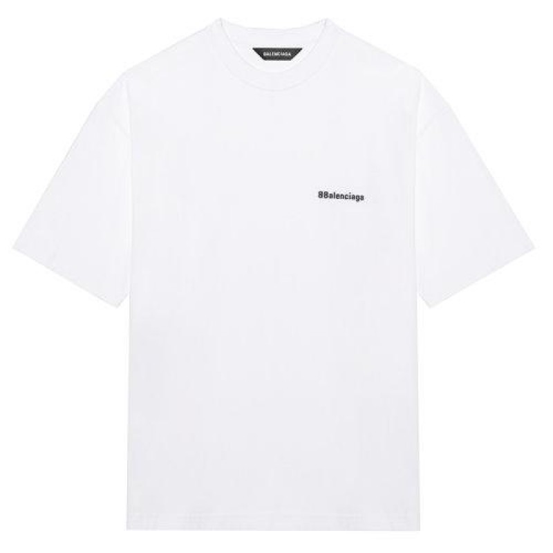 【包税】Balenciaga/巴黎世家 2021年新款 男士BB Corp白色棉质复古平纹针织中号T恤612966TJV879040