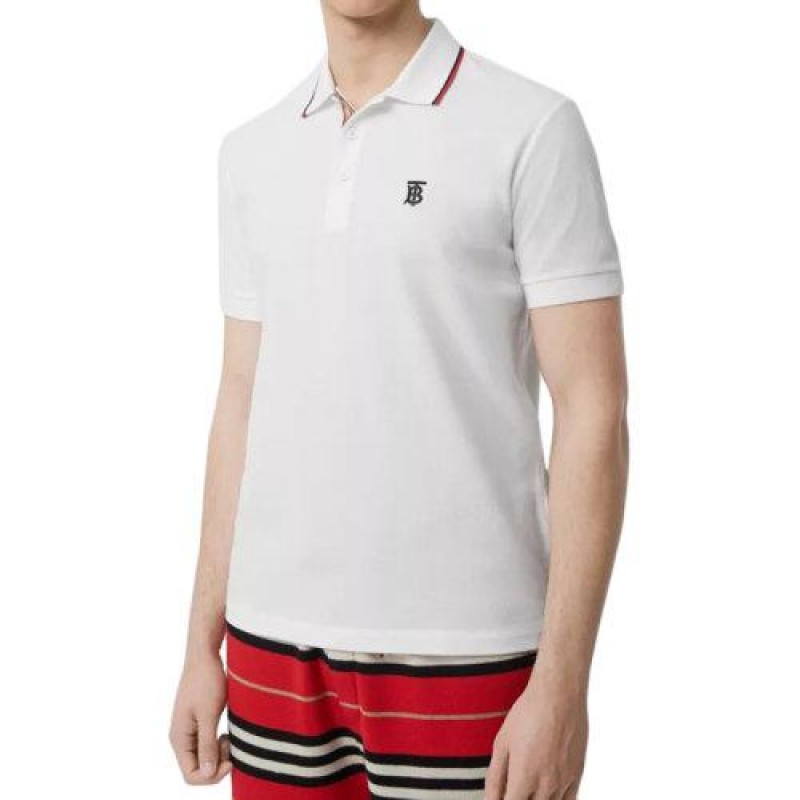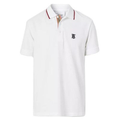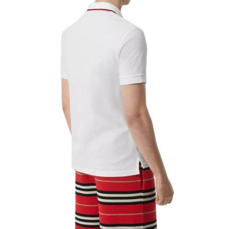 【包税】BURBERRY/博柏利 经典款 男士标志性的条纹纽扣门襟白色棉质piqué短袖POLO衫80170041