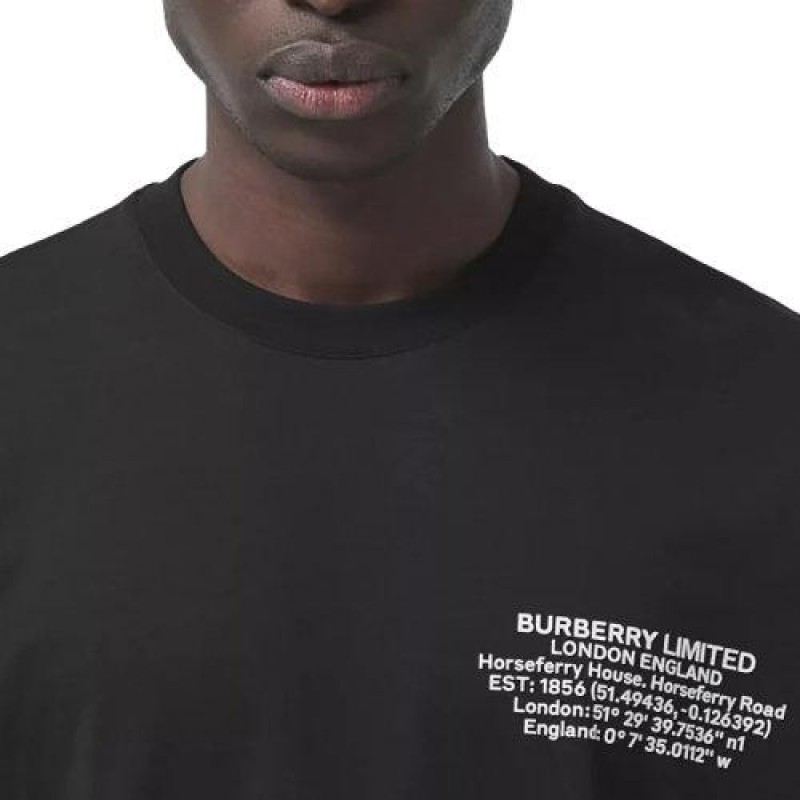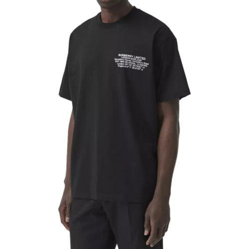 【包税】BURBERRY/博柏利 21年春夏新款 男士黑色超大号纯棉地理坐标T恤80427481