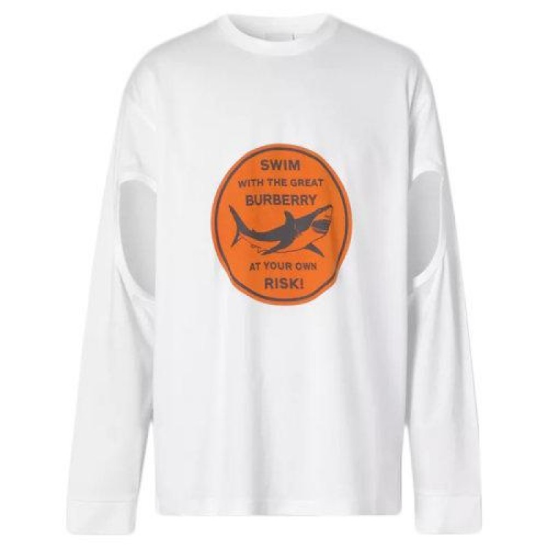 【包税】BURBERRY/博柏利 21年春夏款 男士白色镂空衣袖鲨鱼图案棉质上衣45676361