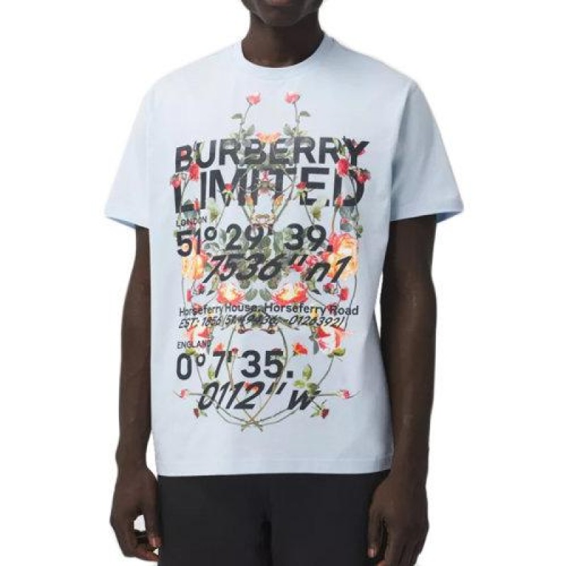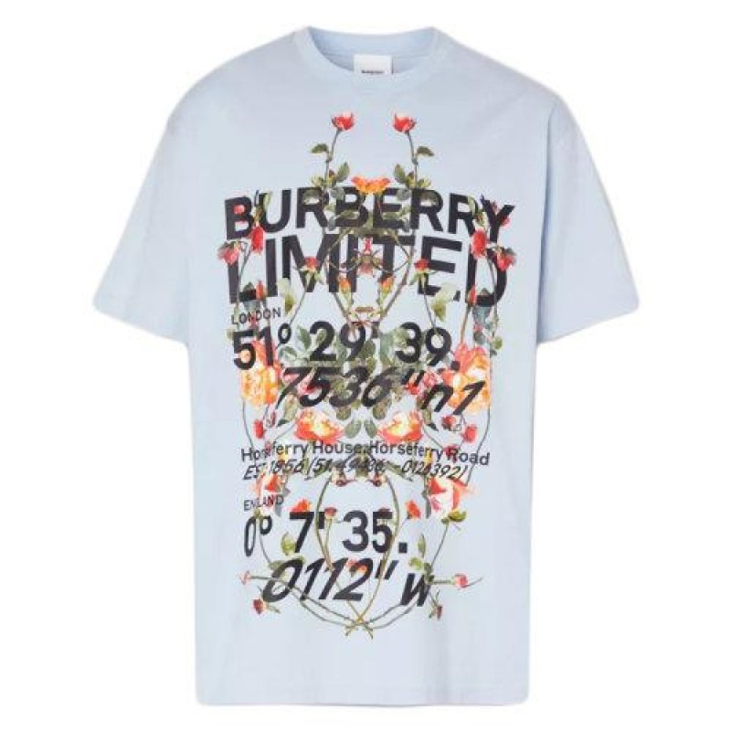 【包税】BURBERRY/博柏利 21年春夏新款 男士浅蓝色蒙太奇印花棉质宽松 T 恤衫80374681