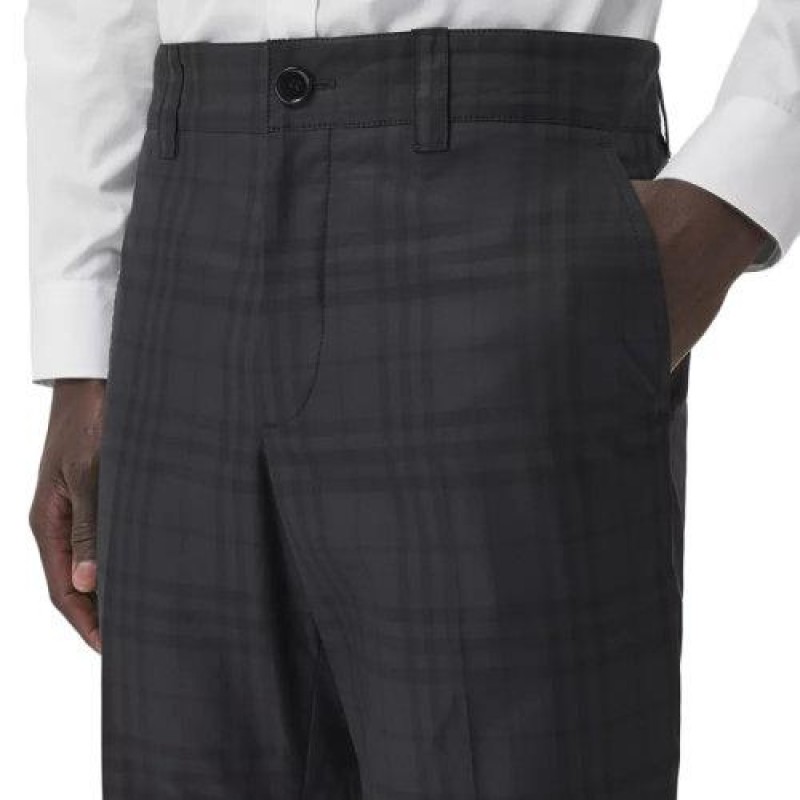 【包税】BURBERRY/博柏利 21秋冬新款 男士黑色格纹棉质量裁九分裤80407111