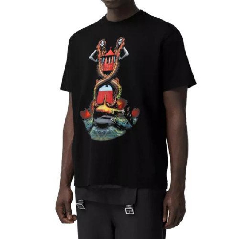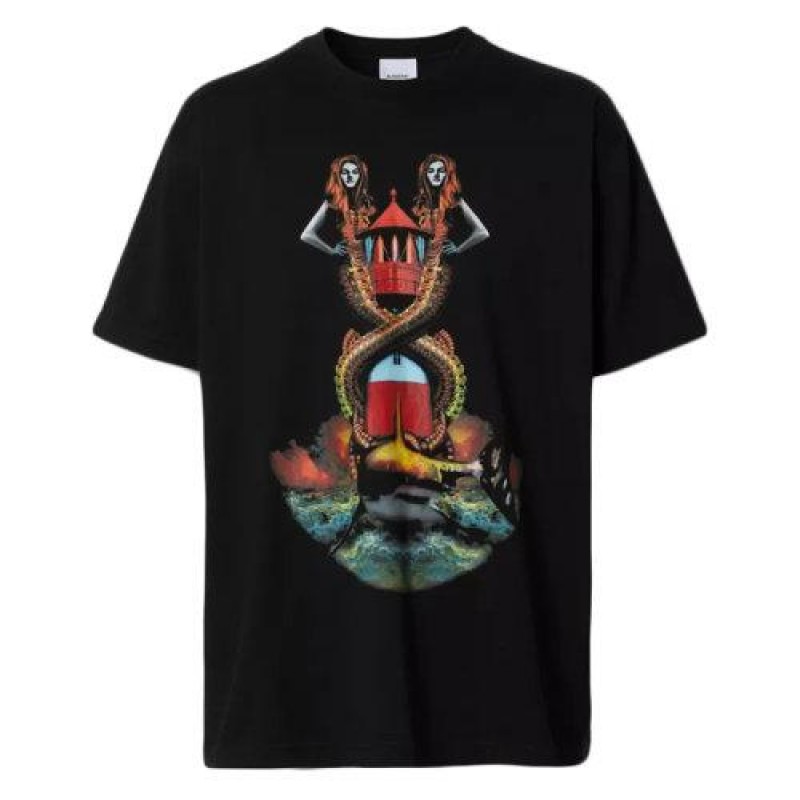 【包税】BURBERRY/博柏利 21年春夏新款 男士黑色美人鱼印花棉质宽松 T 恤衫80406831