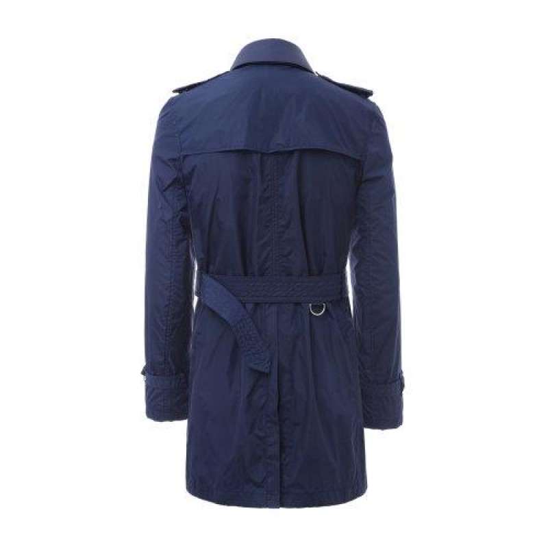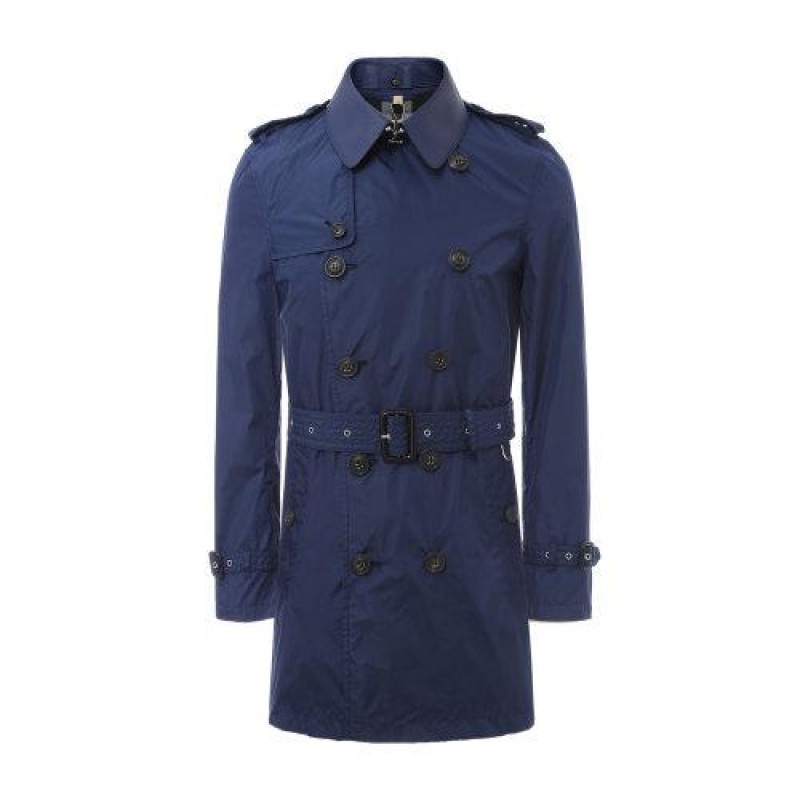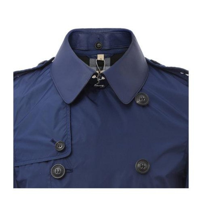 【海外奥莱直采】BURBERRY/博柏利 可拆卸皮领附腰带深蓝色男士风衣 巴宝莉 男士外套 上装