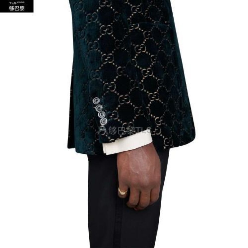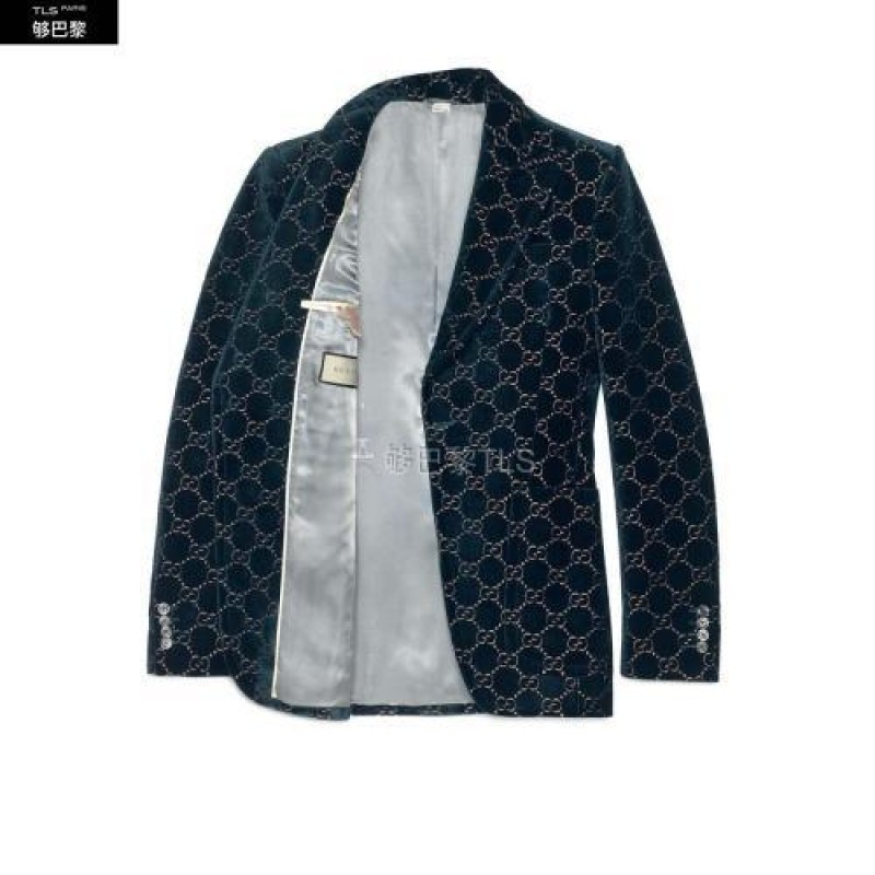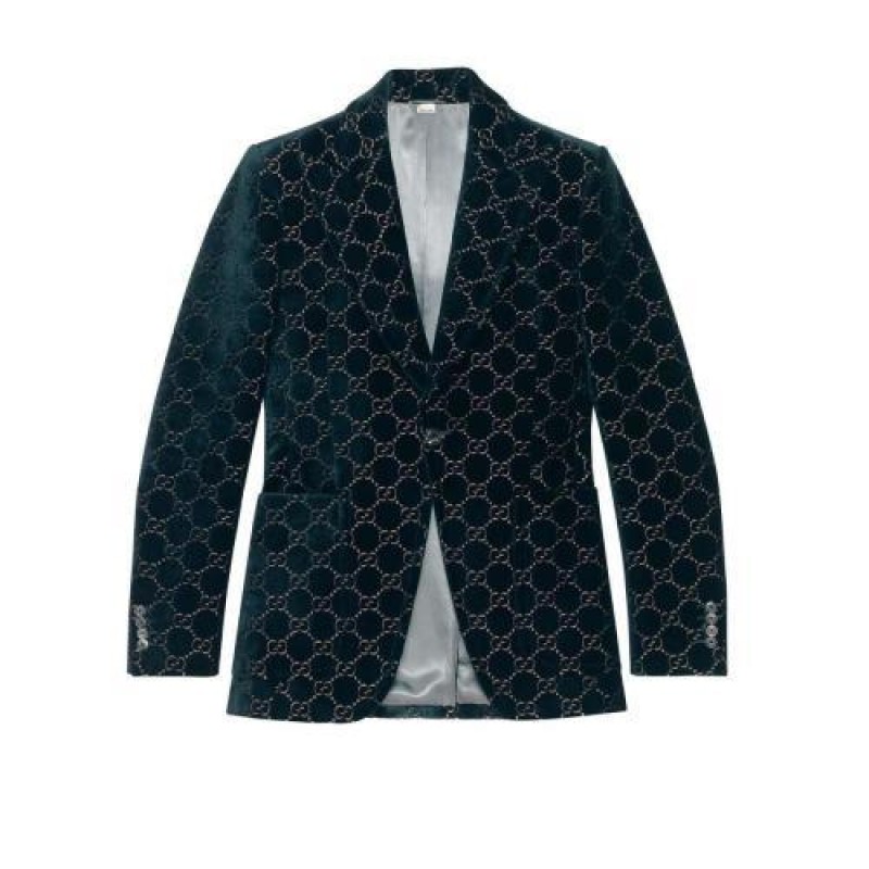 这款正式夹克采用将GG品牌标识融入柔软天鹅绒的经典面料制成。天鹅绒的使用表达了对Gucci传统的尊敬,也证明了经典元素能超越的界限持续散发光热。
