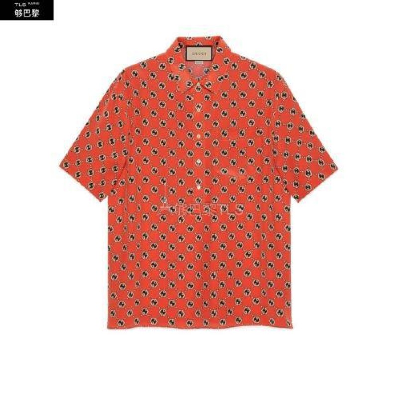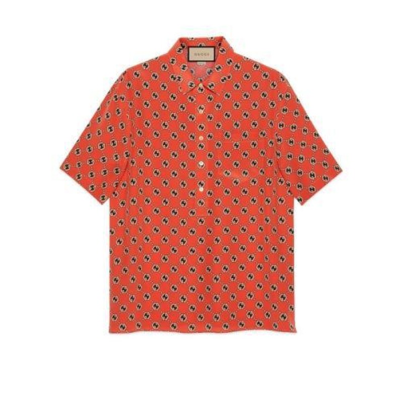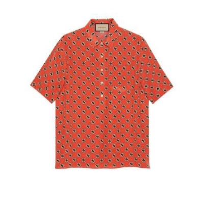 【包邮包税】 GUCCI古驰 21年春夏 男士 GG hexagon silk crepe bowling shirt 654887 ZAF9W 7141 预定商品1-3周发货