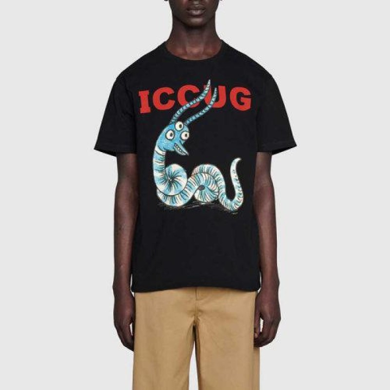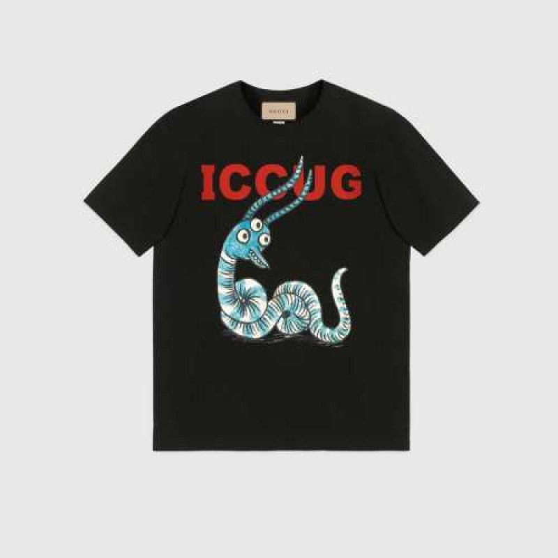 【 Pre sale 】 ICCUG Reverse Animal Printed T-shirt with Freya Hartas by GUCCI/Gucci, Black 548334 XJDJW 1082