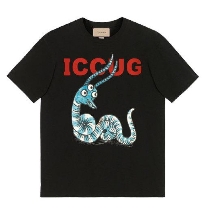 【包税】预订款1-2周 GUCCI/古驰 21年春夏新款 Freya Hartas系列 男士黑色棉质动物印花T恤548334XJDJW1082