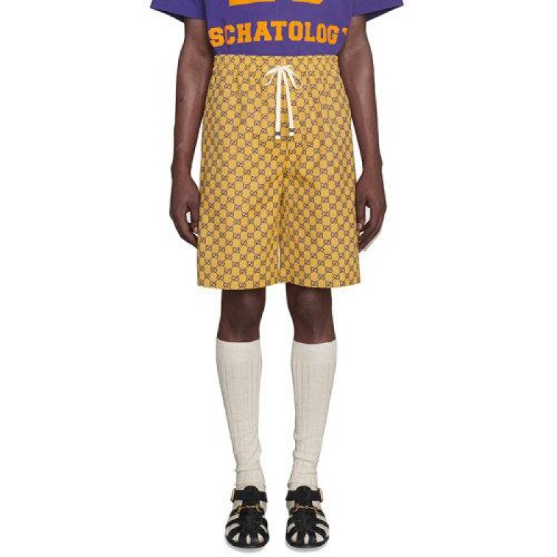 【包税】GUCCI/古驰 2021年新款男士黄色帆布棉质短裤 658089Z8AOG7229