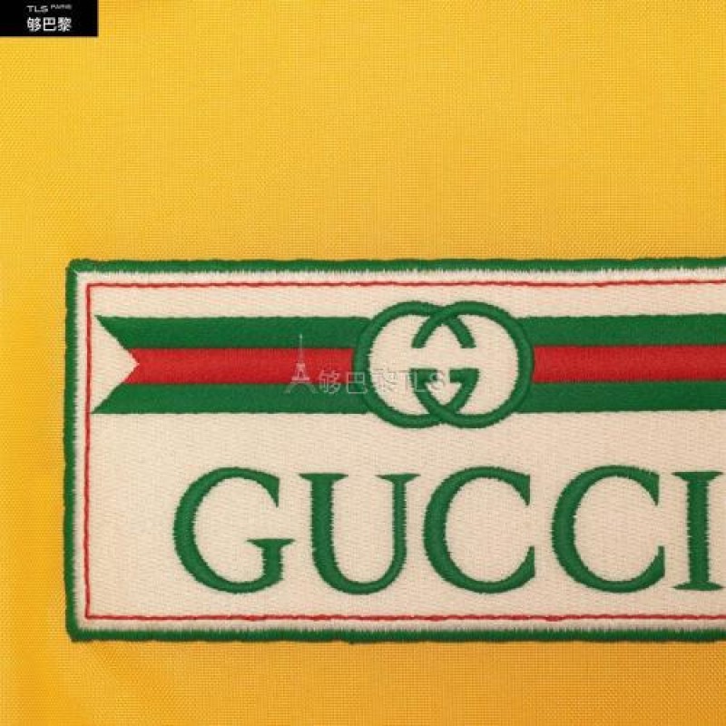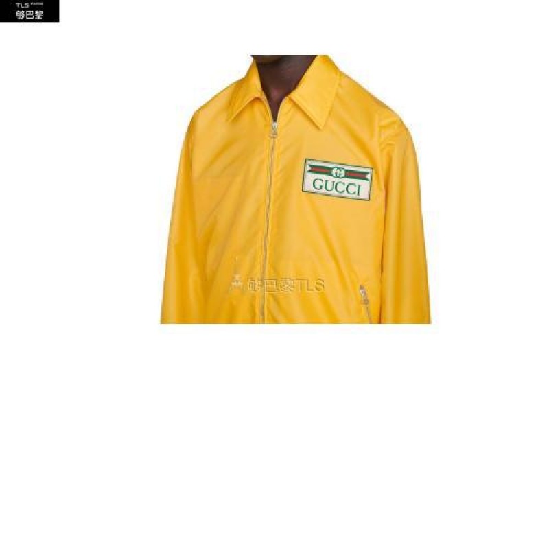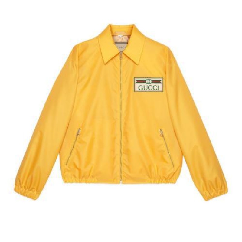 这款亮黄色带领夹克采用轻质帆布尼龙面料制作而成。正面装饰Gucci复古标识贴饰,让人联想起品牌的历史和更多等待探索的未来。