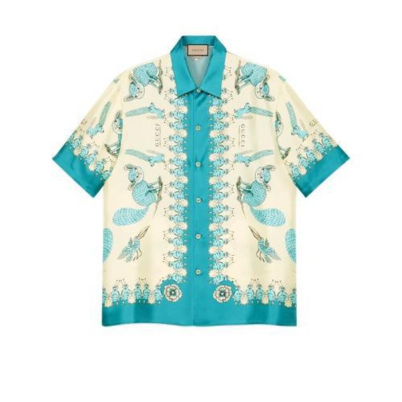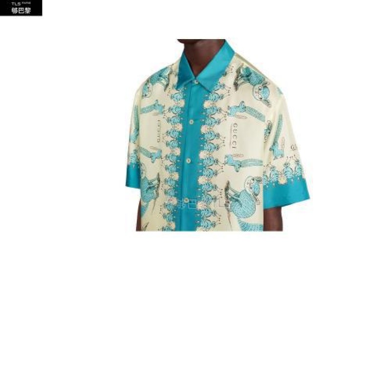 【包邮包税】 GUCCI古驰 21年春夏 男士 Freya Hartas印花斜纹真丝衬衫 654886 ZAGWY 4262
