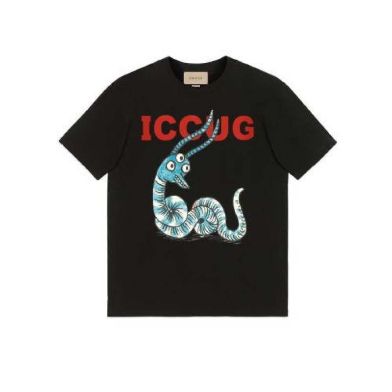 【包邮包税】 GUCCI古驰 21年春夏 男士 饰Freya Hartas创作的ICCUG动物印花T恤 548334 XJ*w*DJW 1082